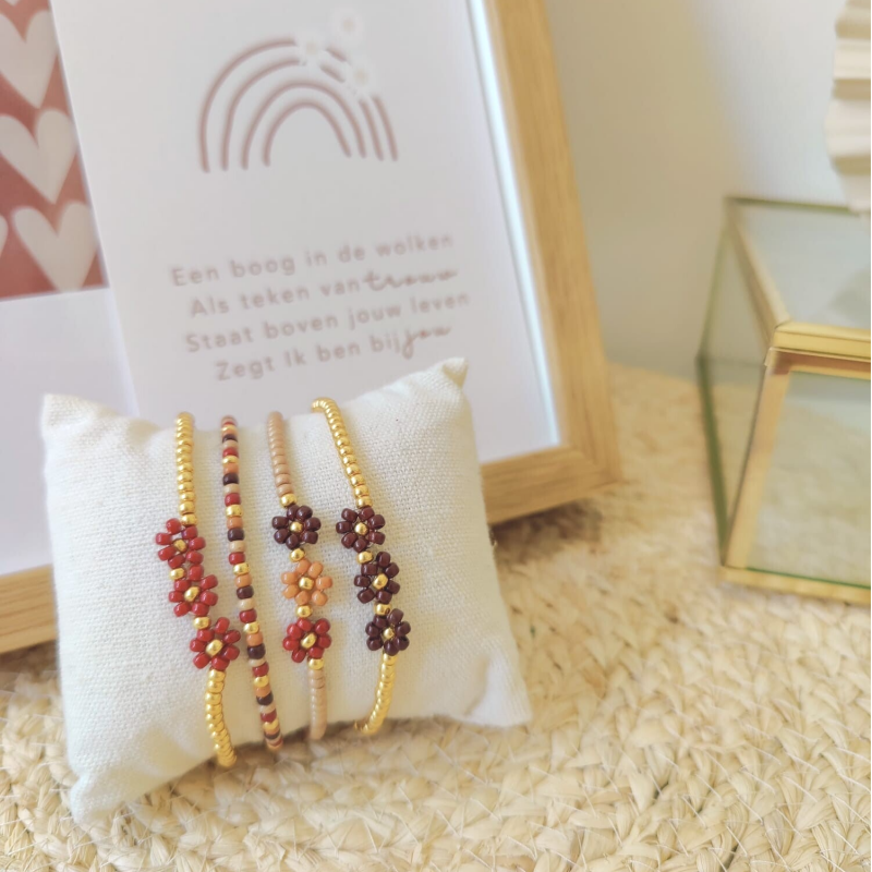 Maak je outfit af met deze stijlvolle armband. Handgemaakt van kralen in prachtige herfst tinten, afgewisseld met een goudkleurige kralen. Een kleurencombinatie die perfect past bij de trends van dit najaar. De sluiting is gemaakt van stainless steel en daardoor kleurvast.
