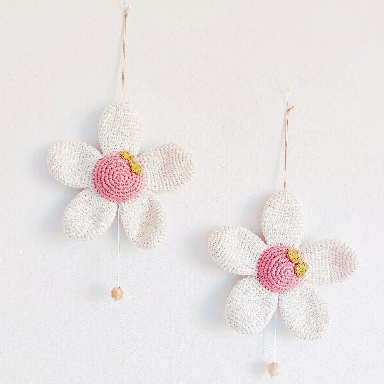 Door de ophanglus aan de bovenkant van de bloem bevestig je de bloem eenvoudig aan het hemeltje van het bedje, de box, het ledikantje of aan de muur.