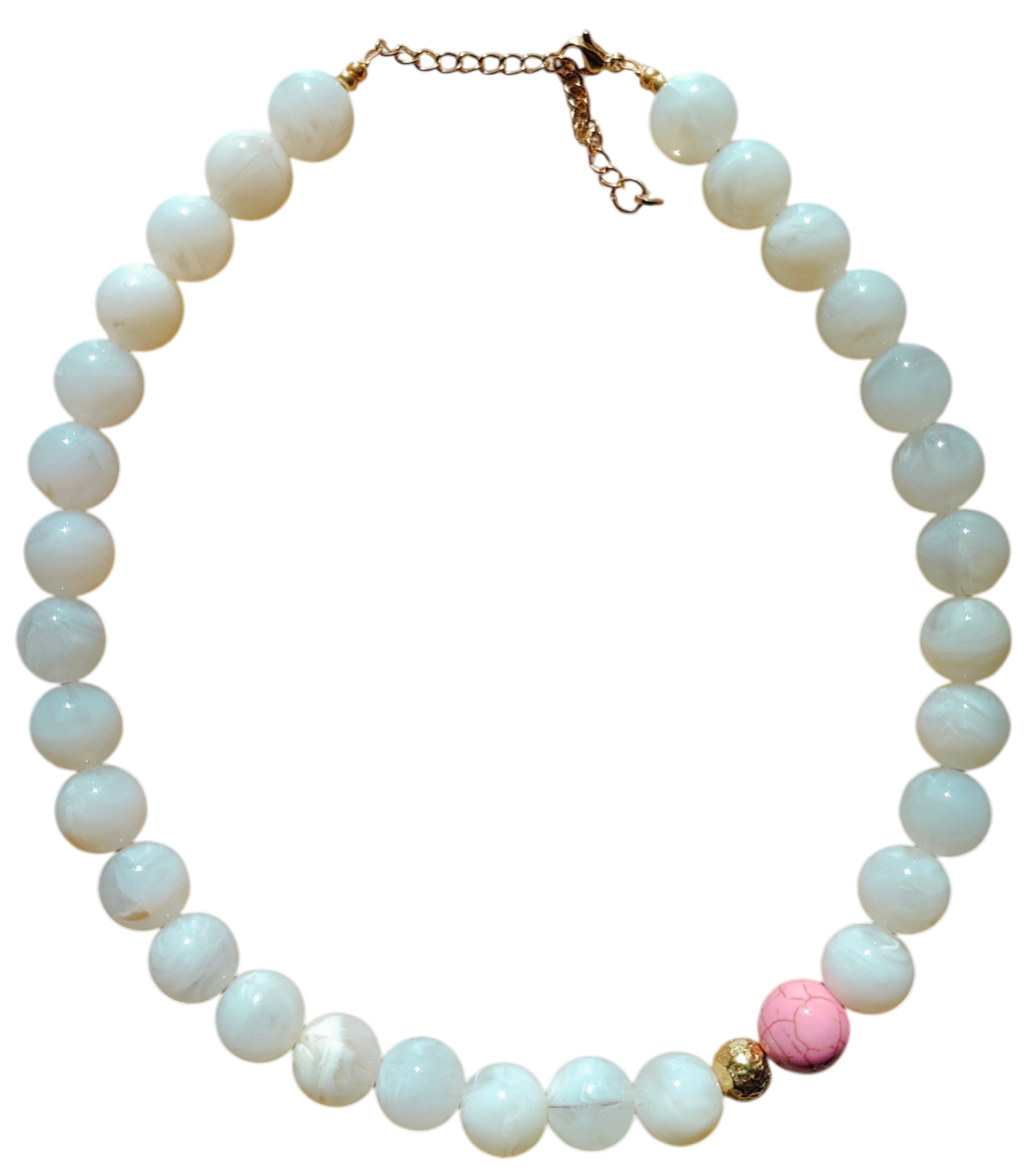 Ketting grote kraal - wit met roze accent