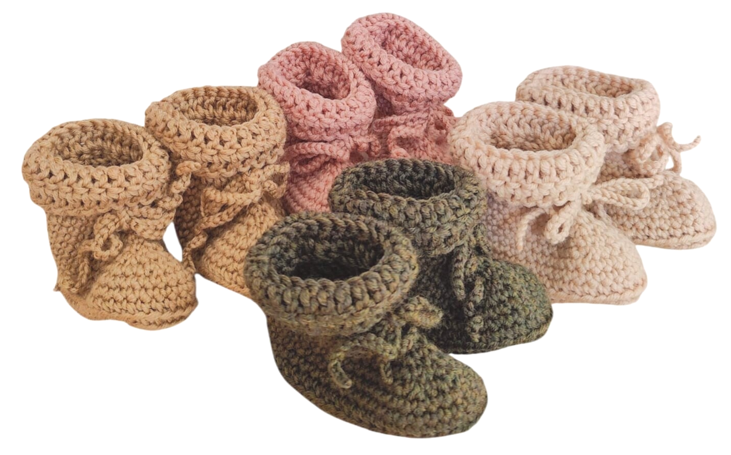 Heerlijk zachte slofjes voor warme babyvoetjes. Deze slofjes van merino wol zijn geschikt voor een leeftijd van 0-3 maanden en zijn verkrijgbaar in verschillende kleuren.