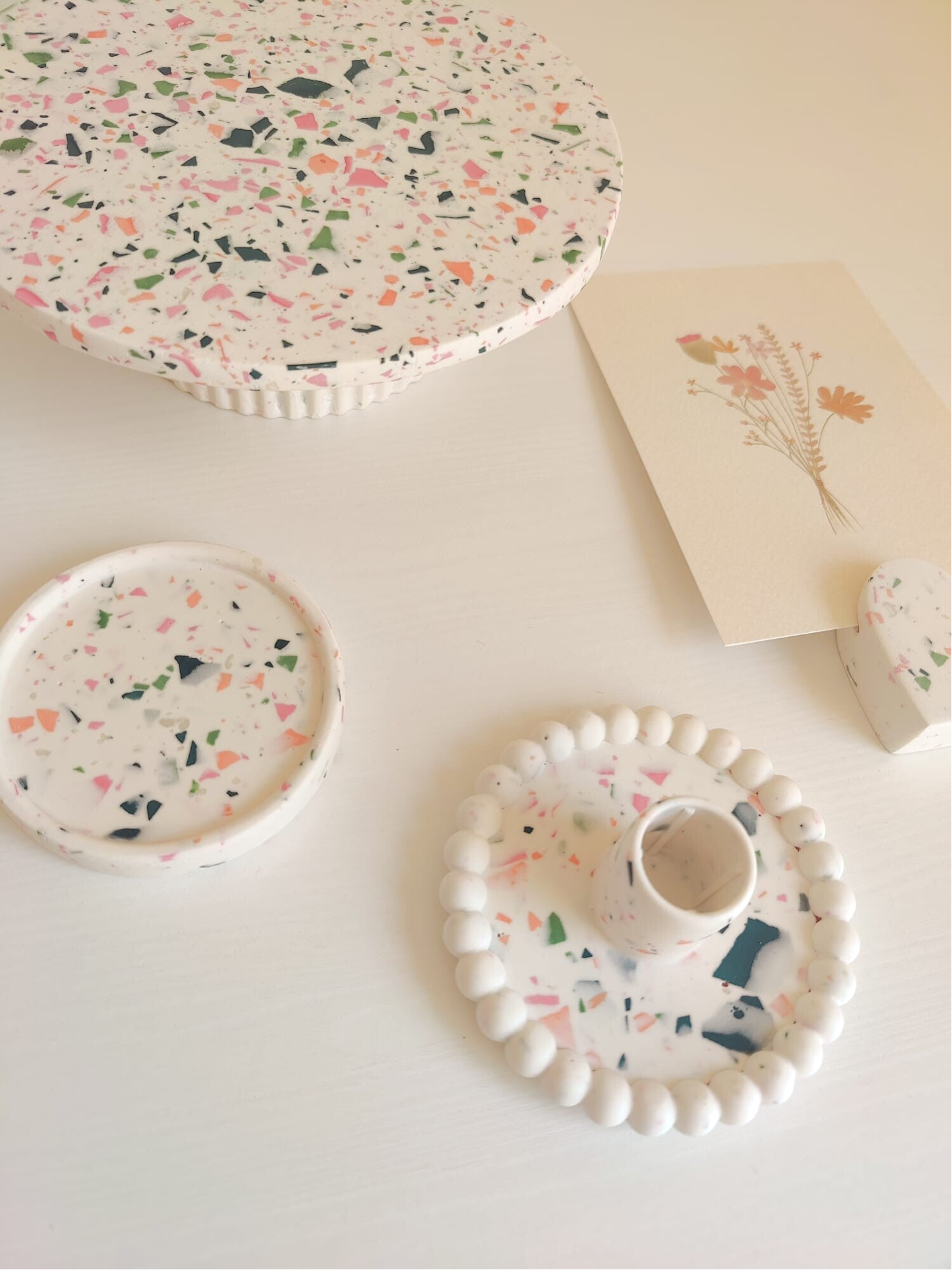 Jesmonite is een composiet poeder en vloeistof. Wanneer je deze met elkaar mengt en in een vorm giet, hardt het uit en kun je de mooiste woonaccessoires maken. Door kleurstoffen te mengen creëer je een eigen unieke kleuren combinatie.